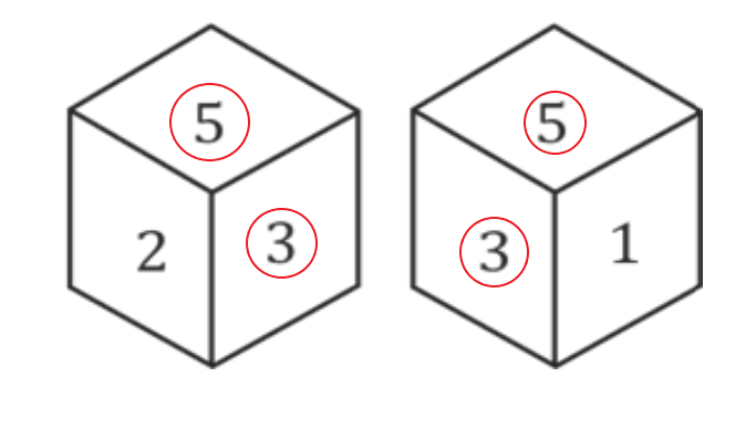 Logic: The Two Common Face rule in dice states that if two dice are shown with two common faces in the same relative position, then the face opposite to the remaining third face in the first dice will be opposite to the third face in the second dice.