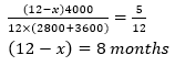 P and Q started a business by investing Rs. 8,000 and Rs. 6,000 respectively. After x months, Q withdrew his investment. At the end of the year, Q’s share of profit was Rs. 2,000 out of a total profit of Rs. 6,000. Find the value of x.