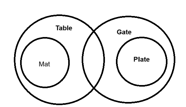 (II): All tables are plates (False, all area of tables are not inside of plates)