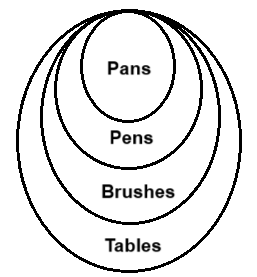II. All pens are brushes.