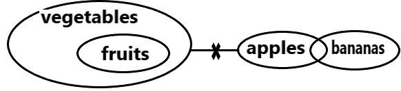 We know fruits ⊆ vegetables, and apples (some of which are bananas) are not vegetables.