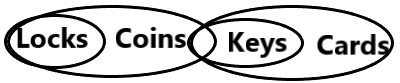 Conclusion I: Some locks are cards. (False, Keys are fully inside Cards, but there is no direct connection that guarantees that Locks are part of Cards. This conclusion does NOT necessarily follow.)