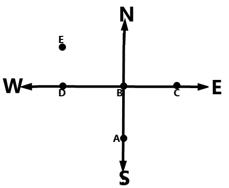 Aman is facing south east and move 5 m forward, turns right and move 5 m and again turns right and move 5 m. Which direction is he from his initial position?