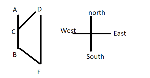 He again turns and walks 40 metres in south-east and finally he turns again towards his house.