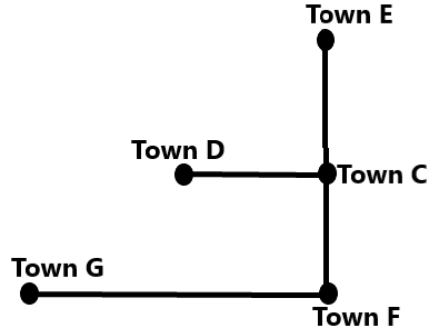 Town C is to the east of Town D. Town E is to the north of Town C. Town F is to the south of Town E. Town G is to the west of Town F. Town D is to the north-east of Town G. What is the position of Town C with respect to Town F?