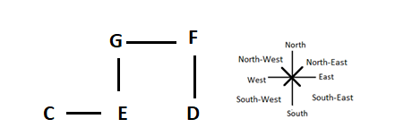 Given - Town C is to the west of Town D. Town E is to the east of Town C. Town F is to the north of Town D. Town G is to the north of Town E. Town G is to the north-west of Town D.