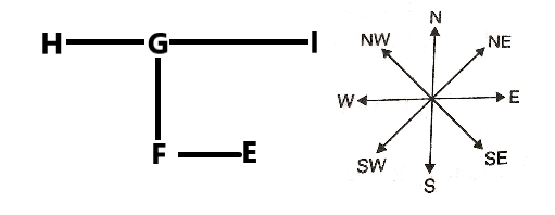 Town E is to the east of Town F. Town F is to the south of Town G. Town G is to the east of Town H. Town H is to the west of Town I. Town E is to the south-west of Town I. What is the position of Town G with respect to Town I?