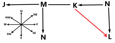 So L is Southeast of K.