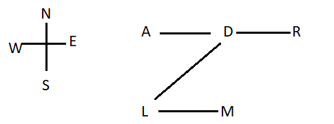 R is in north east direction with respect to L.