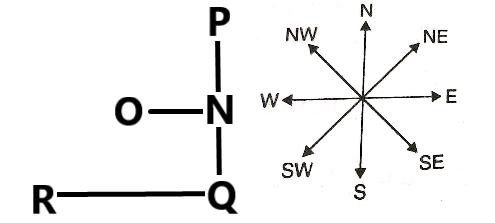 Town N is to the east of Town O. Town P is to the north of Town N. Town Q is to the south of Town P. Town R is to the west of Town Q. Town O is to the north-east of Town R. What is the position of Town N with respect to Town Q?