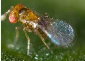 The larvae of Trichogramma develop inside the eggs of pest insects, killing the pest before it can hatch.
