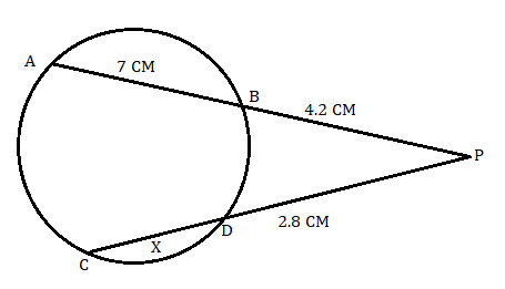 AB = 7 cm, BP = 4.2 cm, and PD = 2.8 cm