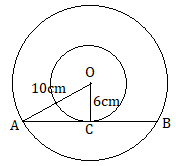 The length of each of two tangents drawn from an external point to a circle is 10 cm. What is the approximate distance from the external point to the center of the circle, if the radius is 6 cm?