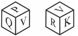 Two positions of a dice are given below. What will come on the face opposite to the face containing 'K' on it?