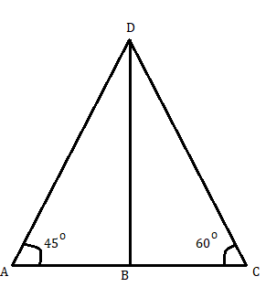 - Angle of elevation from the first ship (∠BAD) = 45°