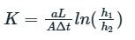 Δt is the time taken for water in a standpipe to fall from height h1 to h2.