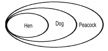 when all hens are dogs and also all dogs are peacock. It implies that all hens are peacocks