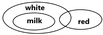II. No red is a milk . (Not follows, Some red could be milk, since both belong to white.)