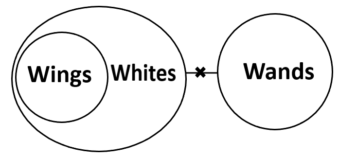 I. Some wings are wands (Does NOT follow, Wings are a subset of whites, and no white is a wand. So, wings cannot be wands).