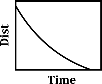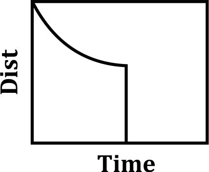 As the decelerating train slows down, separation decreases more slowly (curve flattening).