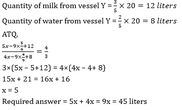 Let the quantity of milk in vessel X be 5x and quantity of water be in vessel X be 4x