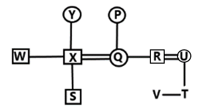 R is married to U and is the brother of Q.