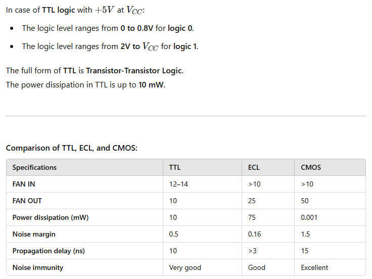 What are the logic levels in case of TTL logic using +5V as VCC?