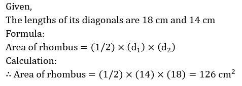 What is the area (in cm²) of a rhombus if the length of its diagonals are 18 cm and 14 cm?
