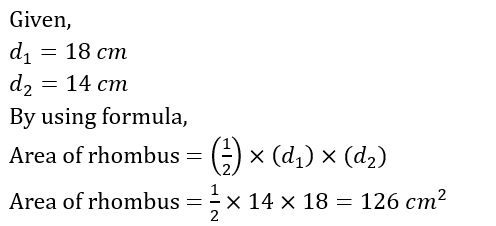 What is the area (in cm²) of a rhombus. If the lengths of its diagonals are 18 cm and 14 cm?