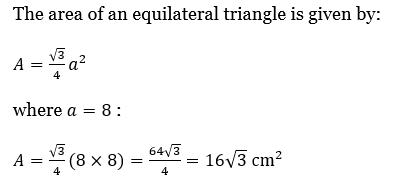 What is the area (in cm2) of an equilateral triangle of side 8 cm?