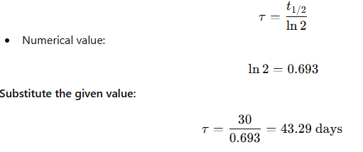 Mean (average) life (τ) = t₁/₂ / 0.693