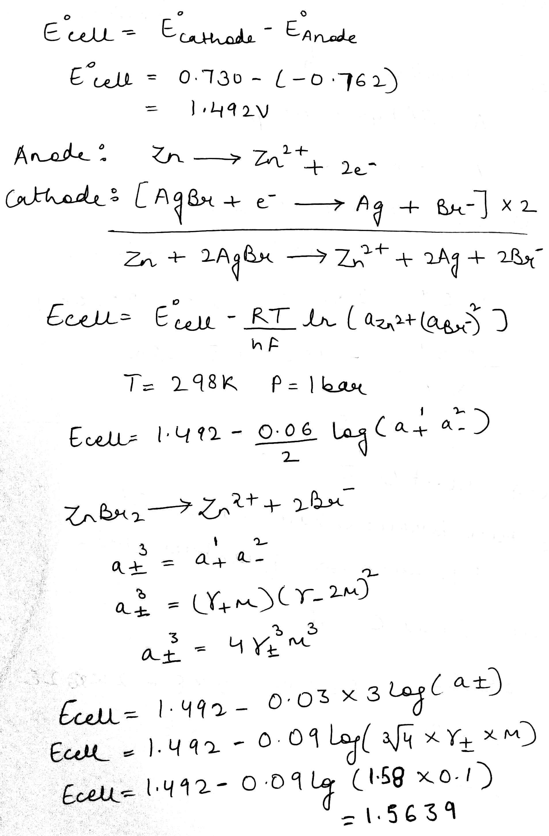 where Qr is the reaction quotient and R is the universal ideal gas constant. The cell potential E associated with the electrochemical reaction is defined as the decrease in Gibbs free energy per coulomb of charge transferred, which leads to the relationship