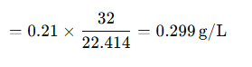 · To calculate the concentration of oxygen in g/L, use the Ideal Gas Law: