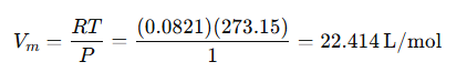 Where: P=1 atm, T=273.15 KT, R=0.0821