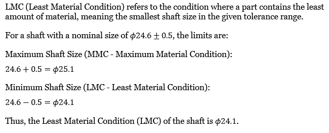 What is the LMC of shaft having tolerance with size ϕ 24.6 ± 0.5