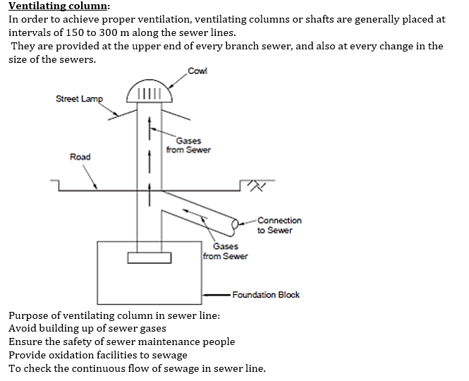 What is the main purpose of providing a ventilation column in the sewerage line?