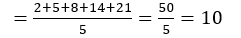 mean of 2, 5, 8, 14, 21 is