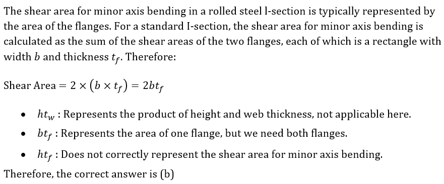 What is the shear area of a rolled steel I-section for minor axis bending? (Where h-overall depth; b-breadth; tw-thickness of web; tf -thickness of