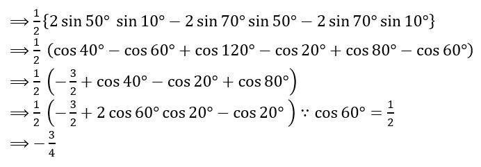 What is the value of sin 10° · sin 50° + sin 50° · sin 250° + sin 250° · sin 10° equal to?