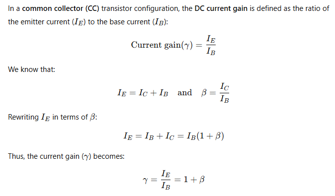 What is the value of the DC current gain in common collector configuration?