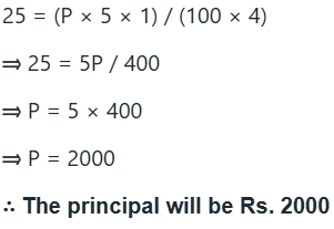 What principal would yield a simple interest of Rs. 25 , invested at 5% for 3 months?
