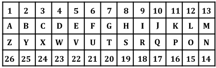 Y + 4 = C (looping back after Z)