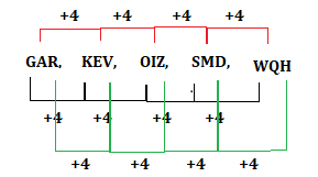 Select the letter cluster that will replace the question mark (?) in the following series
