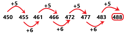 Logic: Differences alternate: +5, +6, +5, +6, +5, +6 → next should be +5.