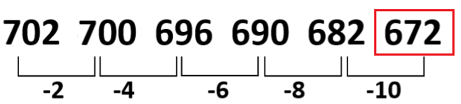 702, 700, 696, 690, 682, ?