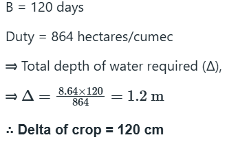 What will be the delta for a crop when its duty is 864 hectares/cumec on the field if the base period of this crop is 120 days?