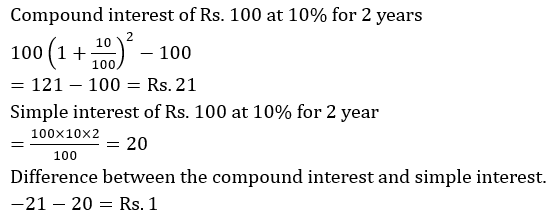 What will be the difference between the compound interest and simple interest on a sum of Rs.100 at 10 % per annum for 2 years?