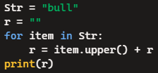 · This effectively reverses the string while converting it to uppercase.