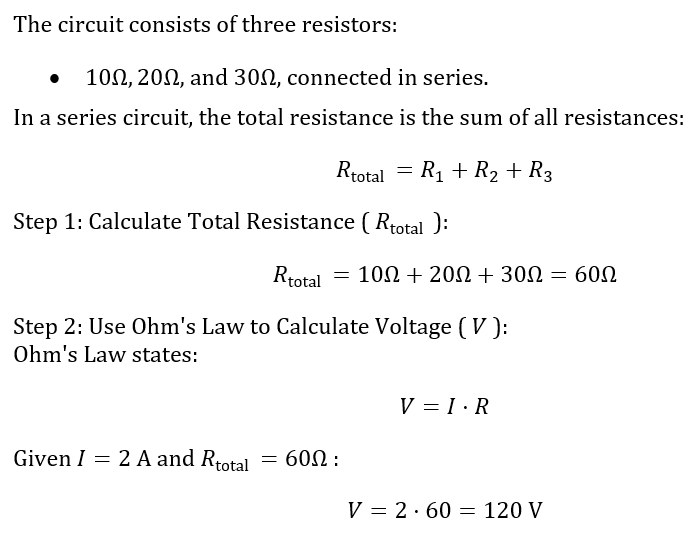 What will be the value of voltage V in die given circuit if a current of 2 Amps is flowing through the circuit?