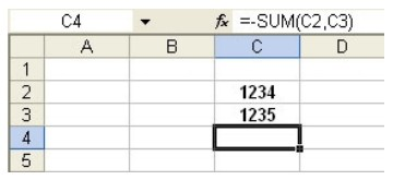 The formula in cell C4 is =-SUM(C2:C3).